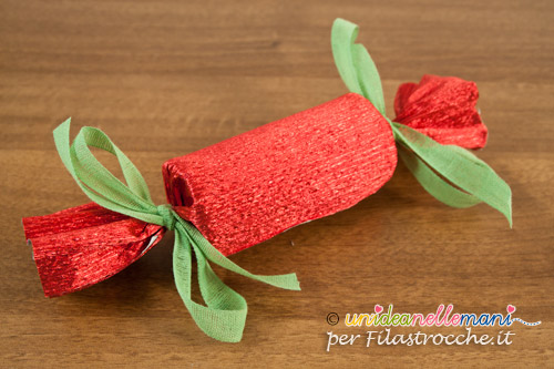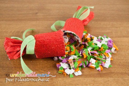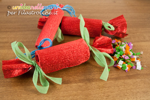 In pratica si tratta di preparare, per ognuno dei partecipanti alla festa, dei simpatici segnaposto a forma di caramella da posizionare sulla tavola di Capodanno. A mezzanotte i segnaposto potranno essere strappati facilmente dando vita ad una esplosione di colorati coriandoli.