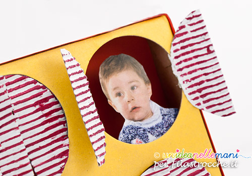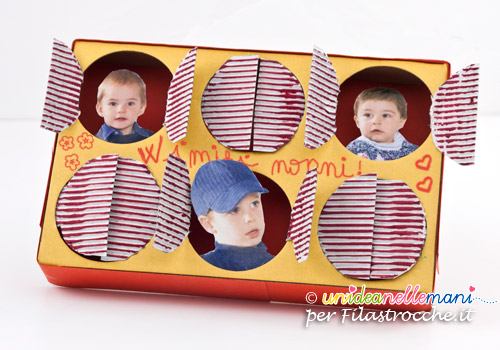 Il portafotografie è quasi terminato e puoi farlo decorare ai tuoi bambini con scritte e piccoli disegnini.