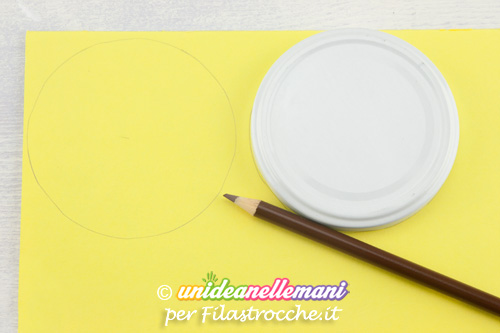 Aiutandoti con un tappo di un barattolo da marmellata fai disegnare al tuo bambino tanti cerchi sui cartoncini colorati.
