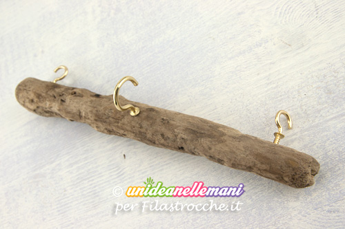A questo punto prepara il supporto di legno del reminder avvitando un gancetto al centro e due ai lati.