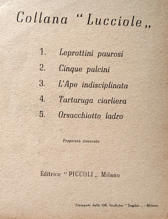 Altri libretti di Jolanda Colombini Monti nella stessa collana “Lucciole” della Casa Editrice Piccoli di Milano: