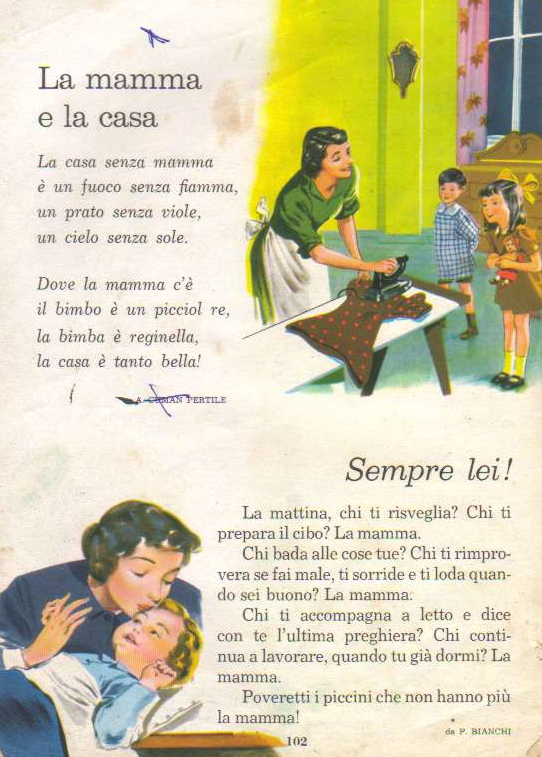 Immagini tratte da: Il mio Sentiero – Letture per il primo ciclo delle scuole elementari – Prima classe. A cura di: Livia Marini, Albertina Varisco, Maria Luisa Villa, Mario Milani, Carlo Rivera, Giampaolo Rovatti – Casa Editrice Agostoni (Milano) – Anni ’50/’60