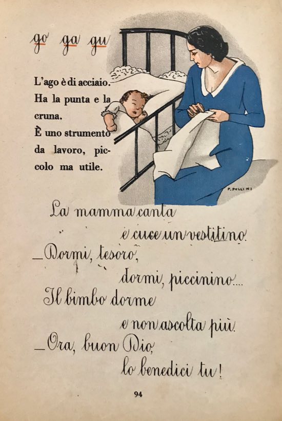 Testo tratto da: Il libro per la prima classe - Compilato dalla Signora Dina Belardinelli-Bucciarelli - Illustrazioni di Pio Pullini - La Libreria dello Stato (1935)