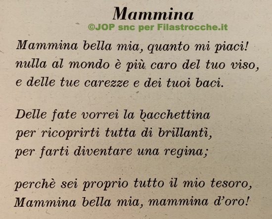 Se cercate delle Filastrocche per la Festa della Mamma in italiano, scritte dagli utenti del nostro sito, cliccate qui.
