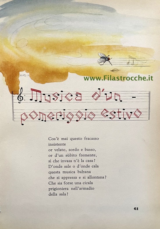 Tratta da: Canzoncine di tutti i mesi – Strofette per ragazzi – Società Editrice Internazionale (Novembre 1954) – Autore: Franco Bianchi (Sancio Pancetta) – Illustrazioni: A. Mossello Guadagni