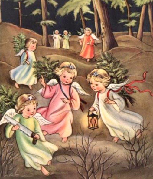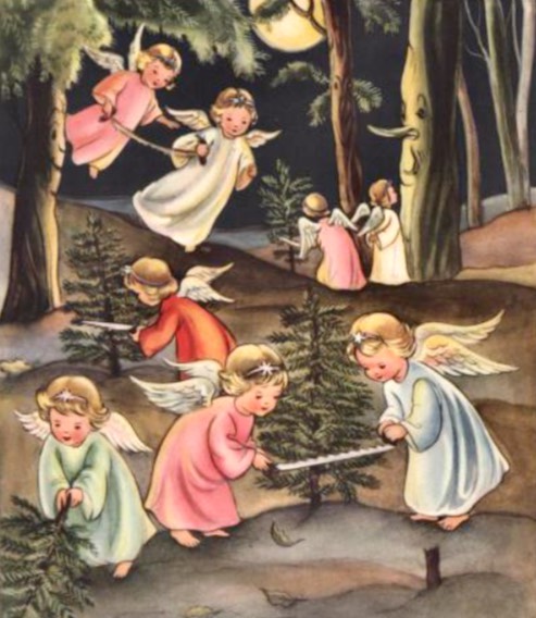 Quando, carichi di pini già segati, gli angioletti si preparano al ritorno, si confidan leggermente preoccupati