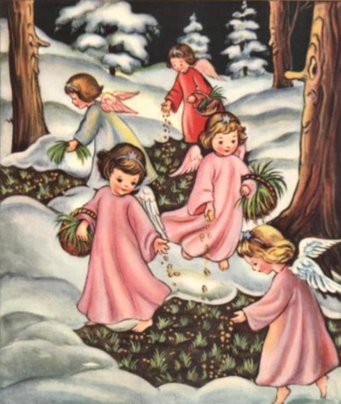 Nella notte, quando il bosco di silenzio è tutto avvolto, giù dal cielo gli angioletti, a frotte a frotte, calan lievi, sorridenti e accesi in volto
