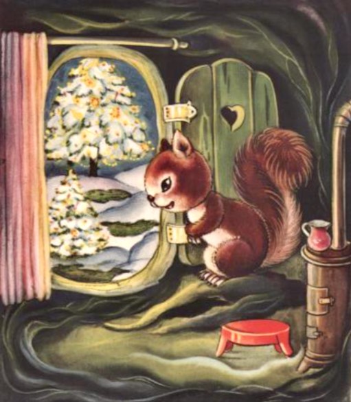 Lo scoiattolo, destandosi al mattino, resta muto per la grande meraviglia. “Tutto lumi scintillanti è il grande pino! Chi è passato nella notte di vigilia?