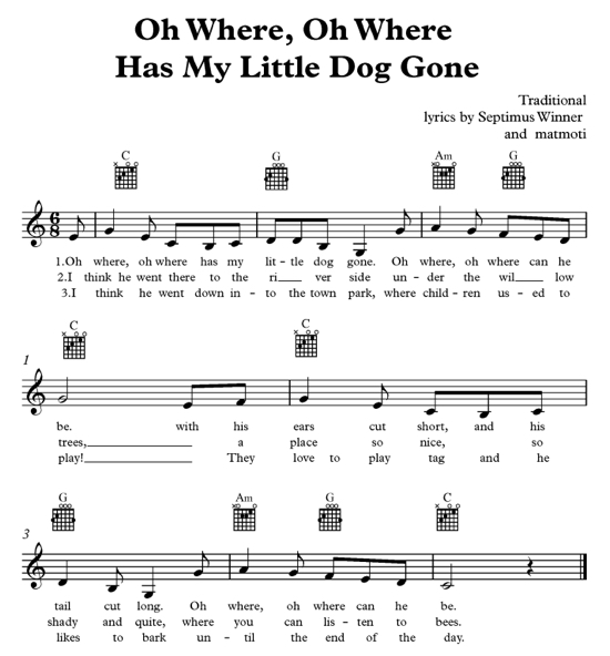 Let’s sing together: Oh Where Has My Little Dog Gone
