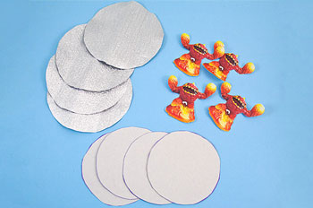 Disegnare e ritagliare 4 cerchi sulla carta crespa e 4 sul cartoncino
