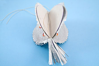 Per rendere la pallina ancor più decorativa, si possono annodare sulla parte finale del cordoncino tante striscioline di carta crespa, precedentemente tagliate in modo da formare una simpatica nappina.