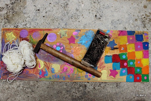 Eccomi pronta per il primo appuntamento su Filastrocche con #esperienzacreativa. Questo è un progetto particolare; come creare un portafoto fai da te con le opere d’arte dei bambini realizzate su di una tavola e fotografie appese a dei fili di lana.