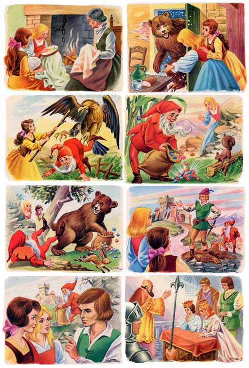 Pochi giorni dopo incontrarono nel bosco un buffo nanetto e lo salvarono dai rapaci artigli di un’aquila, ma egli, invece di essere riconoscente, si mostrò molto sgarbato e dispettoso.