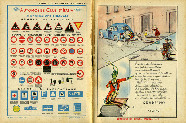 Testo tratto da una copertina di un quaderno scolastico per la scuola primaria appartenente alla Collana editoriale "Quaderno dei segnali stradali".