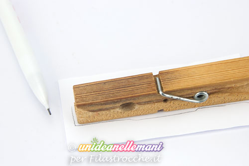 Disegna un rettangolo e ritaglia un pezzo di carta dell’esatta larghezza della molletta e lungo all’incirca quando la sua metà.