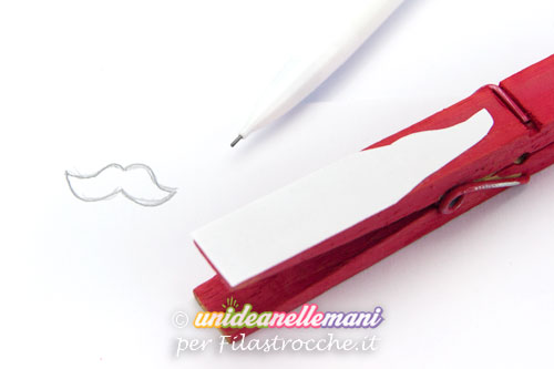Disegna in un foglio di carta un paio da baffi che siano più larghi della molletta ed incollali sopra la barba.