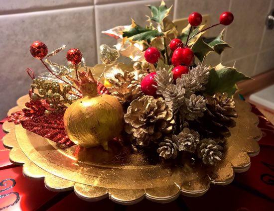 - Pigne, melograno, agrifoglio e decorazioni natalizie a scelta