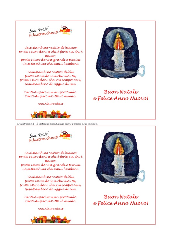 Un bellissimo biglietto d’auguri per festeggiare il Natale, da stampare e ritagliare con la candela di Natale di Filastrocche.it.