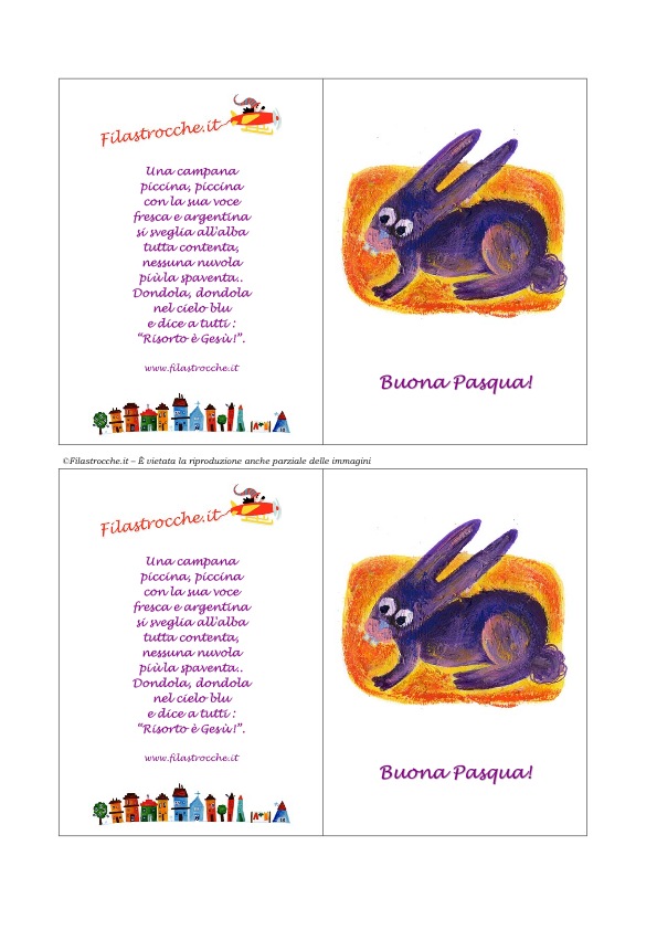Biglietto d’Auguri di Pasqua – Coniglietto con la Filastrocca della Campana