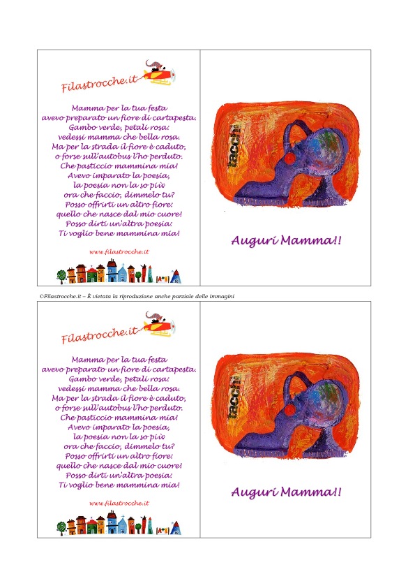 Un bellissimo biglietto d’auguri per la Festa della Mamma, da stampare e ritagliare con la scarpa e la filastrocca, di Filastrocche.it.