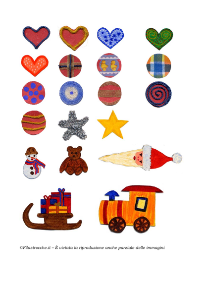 Ecco delle decorazioni di Natale. Stampale, ritagliale e incollale sull’Albero di Natale che Filastrocche ti propone – lo trovi fra gli Addobbi di Natale. Sarà un bellissimo regalo per mamma, papà o per i nonni