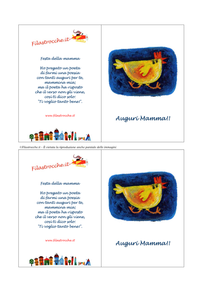 Un bellissimo biglietto d’auguri per la Festa della mamma, con la gallina e la filastrocca del poeta, di Filastrocche.it