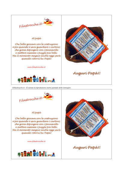 Ecco un simpatico biglietto per la Festa del Papà, con il libro di Filastrocche.it per fare gli auguri al tuo papà nel giorno della sua Festa. Averlo è facile: stampa e ritaglia!