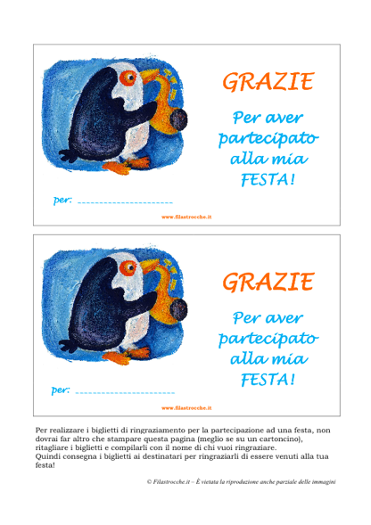 Grazie per aver partecipato alla mia festa! Ecco un bellissimo biglietto di ringraziamento con il pinguino originale di Filastrocche.it