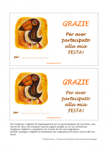 Grazie per aver partecipato alla mia festa! Ecco un bellissimo biglietto di ringraziamento con il tucano originale di Filastrocche.it