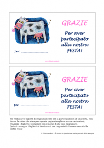 Grazie per aver partecipato alla nostra festa! Ecco un bellissimo biglietto di ringraziamento con la mucca originale di Filastrocche.it