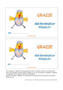 Grazie del fantastico regalo! Per ringraziare amici e parenti per i regali ricevuti per il tuo bambino al Battesimo, alla Cresima o alla Prima Comunione ecco un bellissimo biglietto di ringraziamento con il pulcino originale di Filastrocche.it