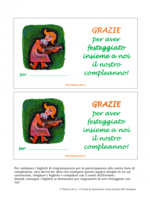 Grazie per aver partecipato al nostro Compleanno! Ecco un biglietto per dire grazie con la ragazza che suona la chitarra originale di Filastrocche.it