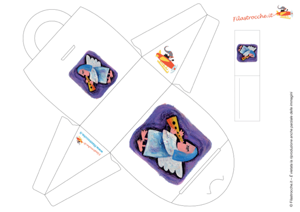 Ecco una bellissima bomboniera a forma di borsetta per la Prima Comunione dei vostri bambini, con l’angioletto originale di Filastrocche.it. Realizzarla è facile: stampate l’immagine su un cartoncino A4, bianco o panna. Ritagliate la bomboniera e il bigliettino e piegate seguendo i bordi. Incollate i lembi della bomboniera e scrivete il nome del festeggiato e la data della festa sul bigliettino. Inserite il bigliettino e i confetti (sempre in numero dispari, mi raccomando!) in ogni bomboniera e decoratela con un nastrino colorato