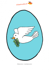 Ecco un colorato Uovo di Pasqua, con la colomba simbolo di pace, che potrai stampare, ritagliare e appendere in casa in occasione della Pasqua