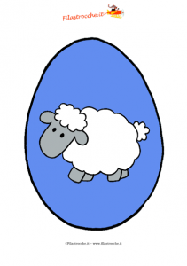 Ecco un Uovo di Pasqua azzurro con dentro una tenera pecorella, che potrai stampare, ritagliare e appendere in casa in occasione della Pasqua