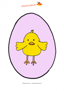 Ecco un Uovo di Pasqua rosa con dentro un tenero pulcino, che potrai stampare, ritagliare e appendere in casa in occasione della Pasqua