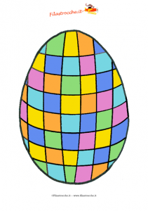 Ecco un colorato e divertente Uovo di Pasqua a quadretti che potrai stampare, ritagliare e appendere in casa in occasione della Pasqua