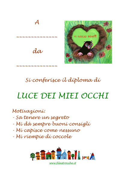 Diploma di San Valentino – Luce dei miei occhi, talpa