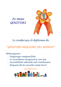 Ai Genitori migliori del mondo! Per fare un regalo simpatico e originale, stampa il diploma di Filastrocche.it, firmalo, arrotolalo e decoralo con un nastrino colorato. E regalalo a mamma e papà. Saranno contenti!