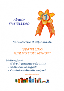 Al Fratellino migliore del mondo! Per fare un regalo simpatico e originale, stampa il diploma di Filastrocche.it, firmalo, arrotolalo e decoralo con un nastrino colorato. E regalalo al tuo fratellino. Sarà contento!
