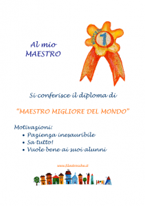 Al Maestro migliore del mondo! Per fare un regalo simpatico e originale, stampa il diploma di Filastrocche.it, firmalo, arrotolalo e decoralo con un nastrino colorato. E regalalo al tuo maestro preferito. Sarà contento!