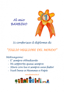 Al Figlio migliore del mondo! Per fare un regalo simpatico e originale, stampa il diploma di Filastrocche.it, firmalo, arrotolalo e decoralo con un nastrino colorato. E regalalo a tuo figlio. Sarà contento!