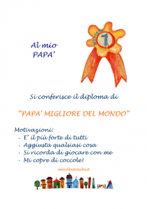 Al miglior papà del mondo! Ecco un pensiero speciale per una persona speciale, il tuo papà! Stampa il diploma di Filastrocche.it, firmalo, arrotolalo, decoralo con un cordoncino e regalalo al tuo papà
