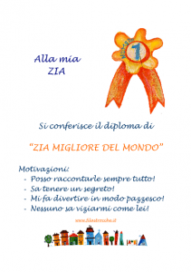 Alla Zia Migliore del mondo! Per fare un regalo simpatico e originale, stampa il diploma di Filastrocche.it, firmalo, arrotolalo e decoralo con un nastrino colorato. E regalalo a tua zia. Sarà contenta!