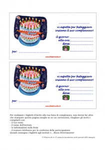 Se gli invitati sono due o più, ecco il biglietto di invito che fa per voi! Filastrocche.it ve lo regala. Stampate il file su un cartoncino, per farlo durare più a lungo, ritagliate gli inviti e compilateli con il vostro nome, i nomi degli invitati e le informazioni su dove e quando si svolgerà la festa. Gli inviti sono pronti per essere consegnati! Buon Compleanno!