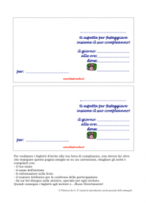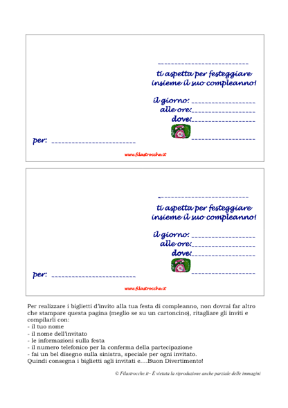 Scatena la tua fantasia e decora il tuo biglietto di invito per la tua festa di Compleanno! Stampalo fai un bel disegno nello spazio a sinistra, poi compilalo e consegnalo agli invitati. Buon Compleanno da Filastrocche.it