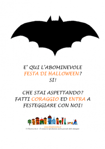 Filastrocche.it vi regala il mini poster con uno spaventoso pipistrello, da appendere sulla porta di casa o nel luogo dove si sta svolgendo la Festa di Halloween! Stampatelo e appendetelo! Buon divertimento!