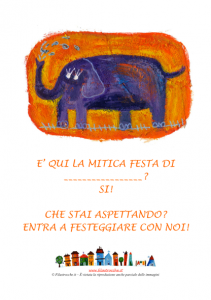 Filastrocche.it vi regala il mini poster con l’elefantino, da appendere sulla porta di casa o nel luogo dove si sta svolgendo la vostra Festa! Stampatelo, compilatelo con il nome del festeggiato e appendetelo. Buon divertimento!