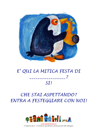 Filastrocche.it vi regala il mini poster con il pinguino, da appendere sulla porta di casa o nel luogo dove si sta svolgendo la vostra Festa! Stampatelo, compilatelo con il nome del festeggiato e appendetelo. Buon divertimento!