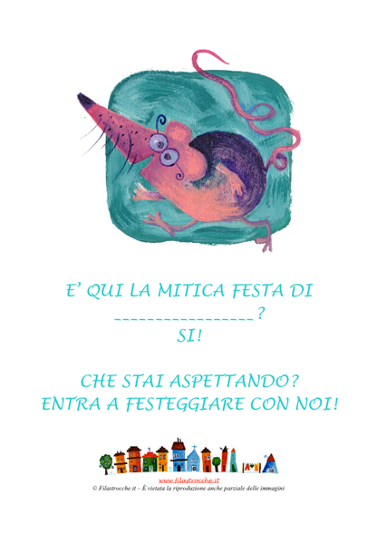 Filastrocche.it vi regala il mini poster con il topolino, da appendere sulla porta di casa o nel luogo dove si sta svolgendo la vostra Festa! Stampatelo, compilatelo con il nome del festeggiato e appendetelo. Buon divertimento!
